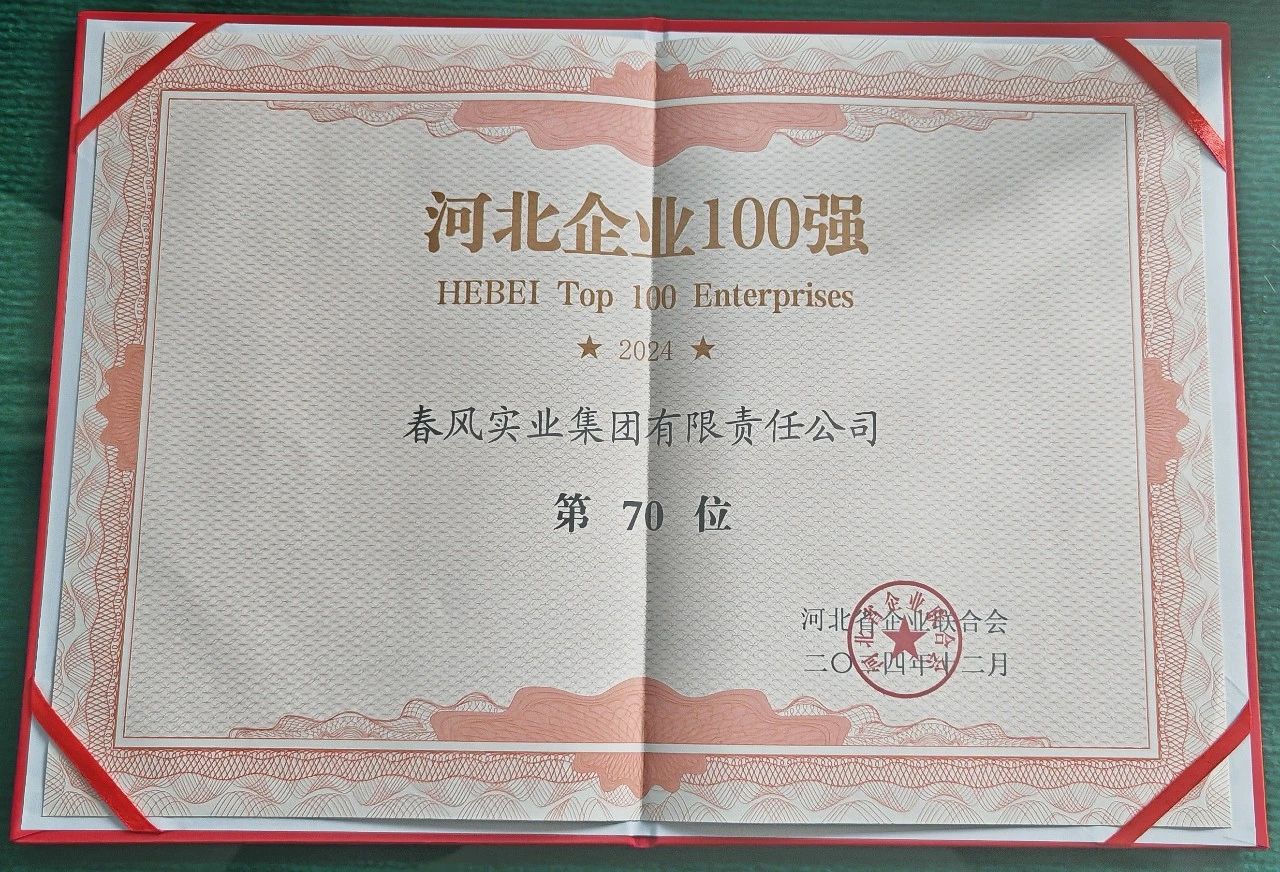 【喜報(bào)】春風(fēng)實(shí)業(yè)集團(tuán)榮獲“2024河北企業(yè)100強(qiáng)”和“河北制造業(yè)企業(yè)100強(qiáng)”稱號(hào)!
