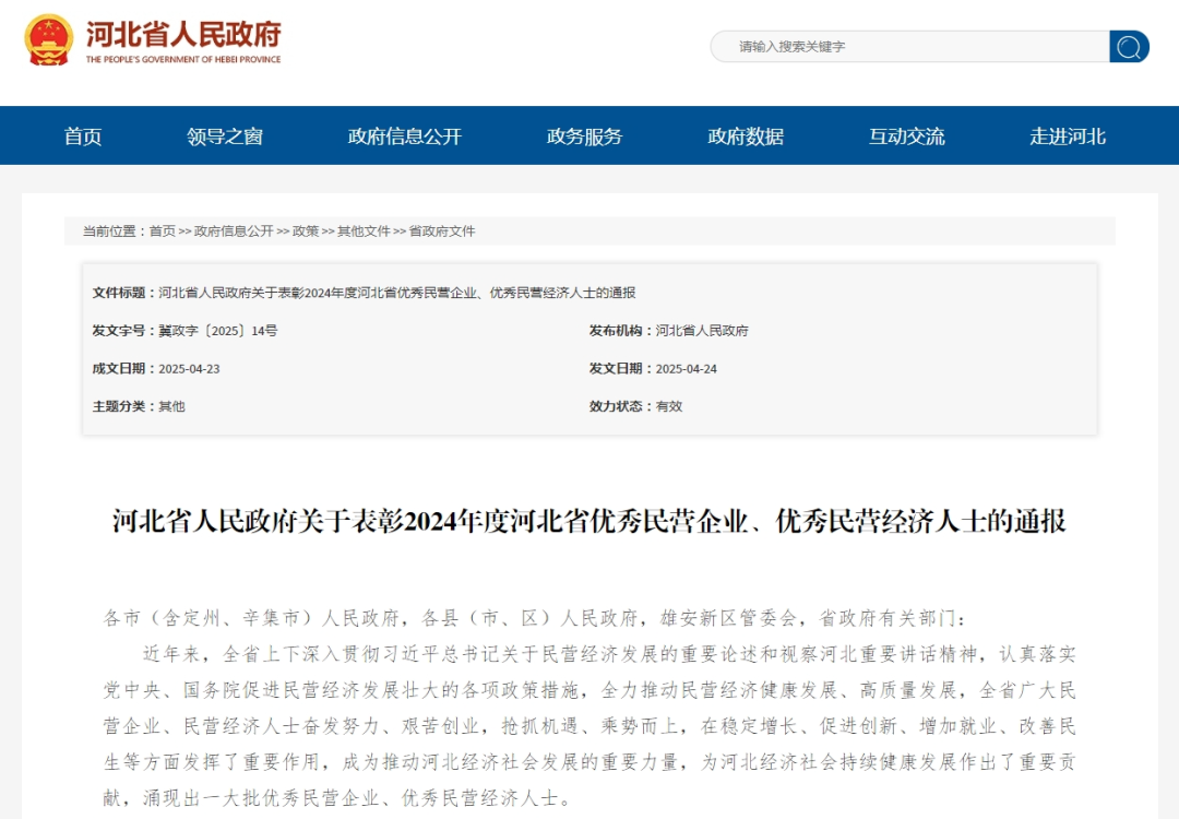 【喜報(bào)】春風(fēng)實(shí)業(yè)集團(tuán)榮獲“2024年度河北省優(yōu)秀民營企業(yè)”榮譽(yù)稱號(hào)